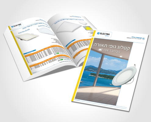 עיצוב קטלוג מוצרים מקצועי גופי תאורה לד של אלקטרה לייטנינג עבור קצנשטיין אדלר